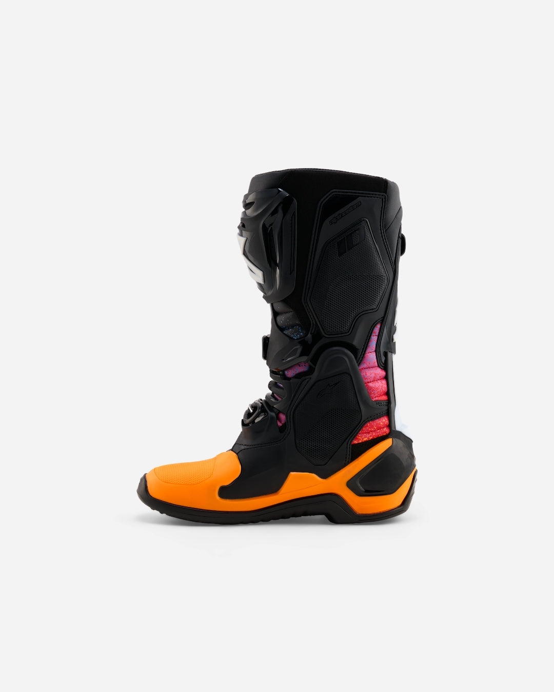 Una suola completamente ridisegnata con un esclusivo disegno del battistrada migliora le prestazioni delle pedane, l'aderenza e l'evacuazione di fango e acqua. L'esclusiva suola bimescola si integra perfettamente nella struttura multidensità del piede con supporto integrato. La suola offre maggiore durata, grip e sensibilità migliorati durante la guida, oltre a prestazioni del cambio migliorate. L'inserto centrale della suola è dotato di microgrip e grip laterale. È facilmente sostituibile e Alpinestars offre un servizio completo di riparazione e risuolatura.